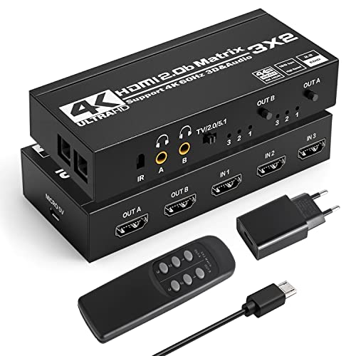 HDMI Matrix 3x2 - Tendak 3 Entrée 2 Sortie Matrice HDMI Comm...