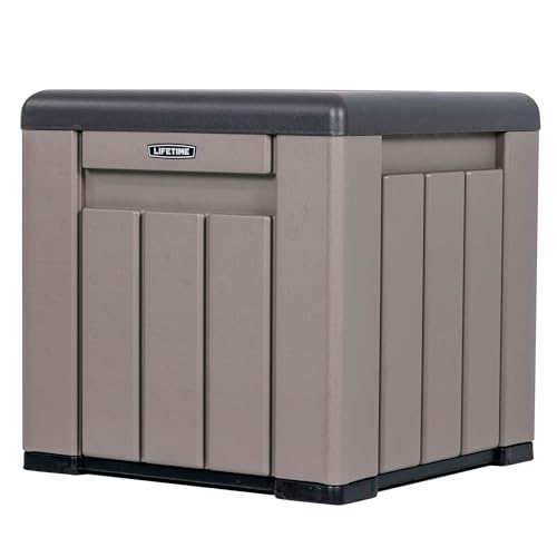Coffre extérieur gris résistant avec couvercle et poignées d...