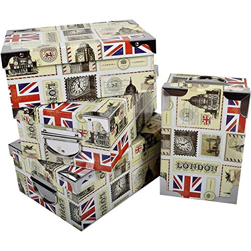 London, Lot De 4 Boîtes De Rangement En Carton Imprimé Decor...