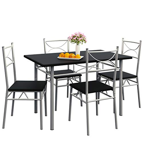 CASARIA Ensemble 5 pièces Paul Noir 1 Table 4 chaises MDF mé...