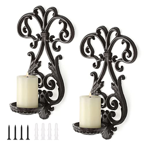 SUMNACON Lot de 2 appliques murales vintage en fonte bougeoi...