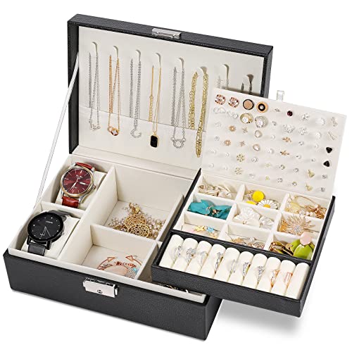 E-MANIS Boite a Bijoux pour Femme, 2 Couches, Rangement Bijo...