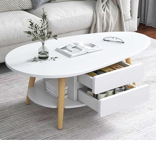 Table basse ovale bois moderne tiroirs rangement 2 couches s...