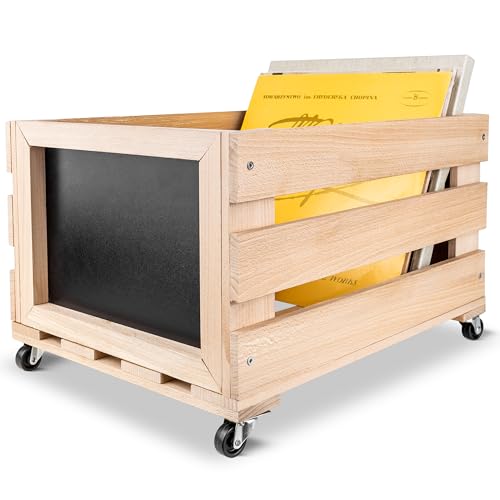 Caisse bois déco vinyles noir 46 x 36 x 29 cm Bac rangement...
