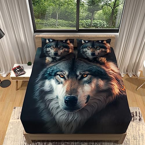 WHUOEUCO Drap-Housse 140x190 cm Loup Animal Respirant Extens...
