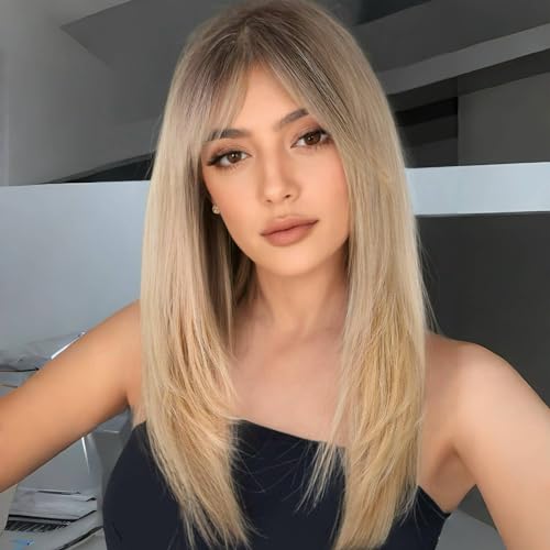 Wokestar Long Perruque Droite Femmes Franges Rideau Blondes...