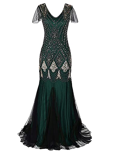 Robe de soirée féminine années 1920, longue en col V avec pa...