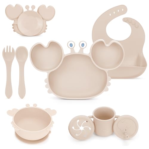 Lot de 8 couverts silicone pour bébé, ventouse, assiette, cu...