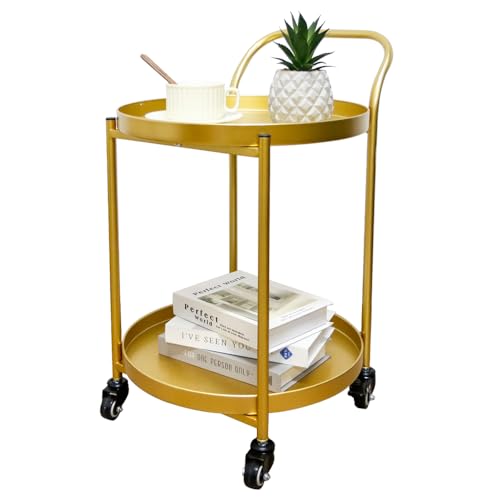 TRIROCKS Chariot de Service Rond Doré à 2 Niveaux avec roule...
