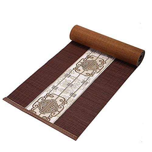 Coureur De Table De Bambou Brun avec Bord De Coton, Style Ch...