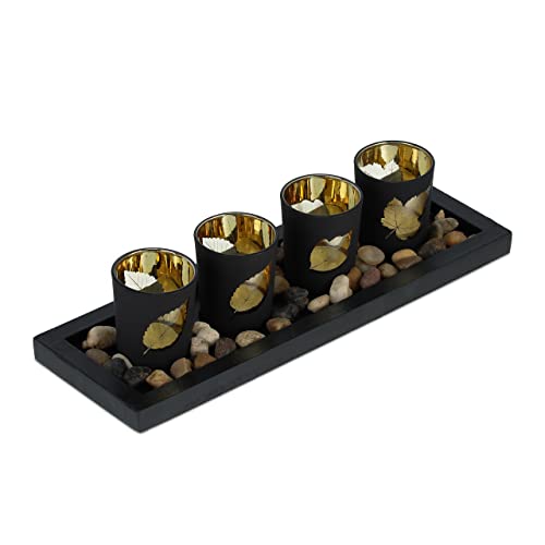 Relaxdays Photophores en lot avec Plateau et Pierres, 30 cm,...