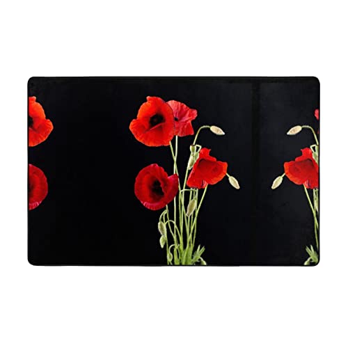 Tapis antidérapant à imprimé floral rouge pour salon, salle...