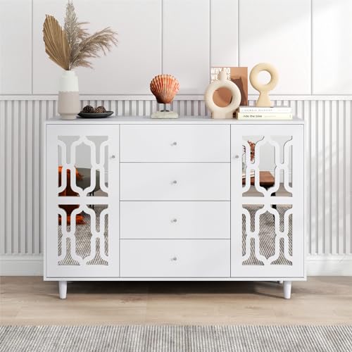 Azkoeesy Commode Buffet avec 4 portes miroir Blanc 160 x 40...