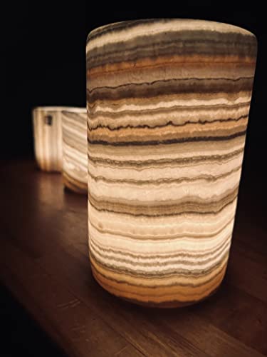 Zoe Bougeoir Pierre d'Albâtre Ensemble de 2 Bougies Cylindri...