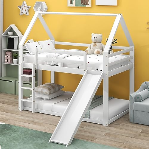 [Lit superposé en forme de maison avec toboggan] Ce lit supe...