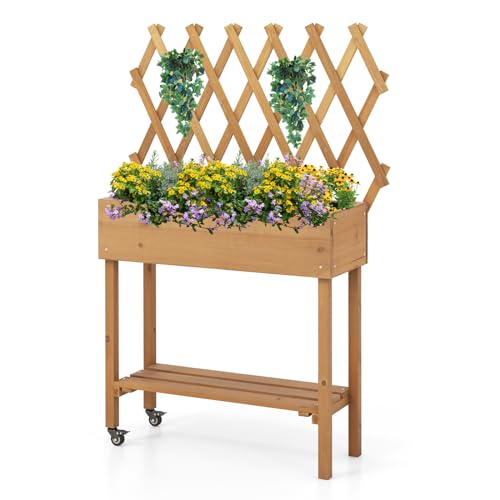 GOPLUS Jardinière Surélevée Bois Treillis Potager 90x29x129c...