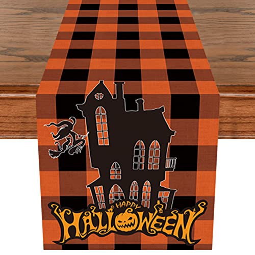 CheminTableHalloweenCarreauxOrangeNoir35x180cm