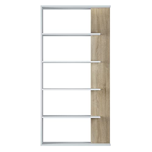 HOMN LIVING Étagère Bibliothèque Lugo Couleur Blanc/Chêne 5...