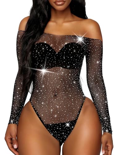 Lingerie Body Rhinestone Scintillant Teddy Maille Noire Femm...