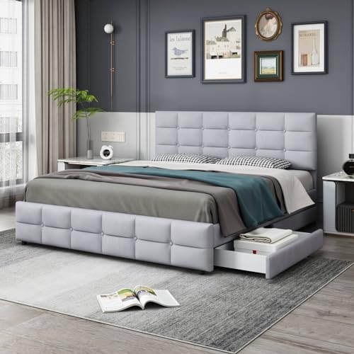 Sweiko Lit rembourré 180x200 cm Cadre lit 4 tiroirs, sommier...