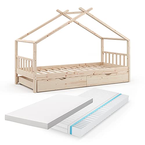 VitaliSpa lit cabane Design, Naturel Bois, 90x200 cm avec li...