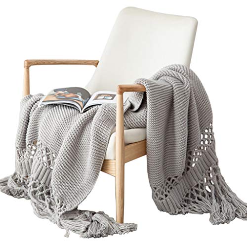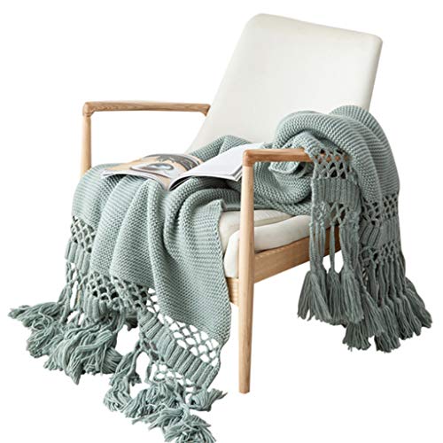 PLCPDM Couverture tricotée avec pompons creux, pour lit et c...
