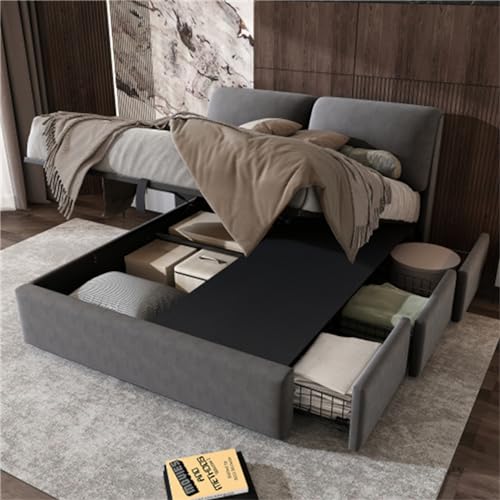 Lit Rangement Rembourré avec élévateur Hydraulique, Tête De...