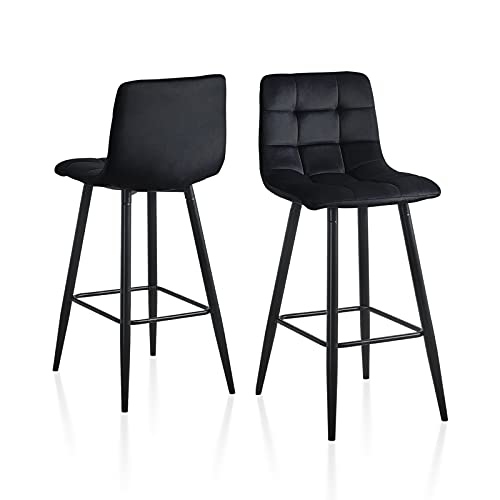 TUKAILA Lot de 2 tabourets bar noirs velours, dossier repose...