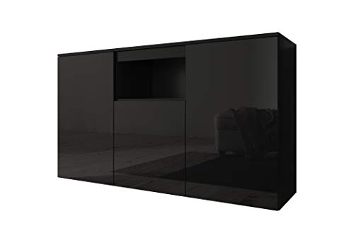 Muebles Bonitos Buffet Salon Bas 3 Portes Noir Finition
