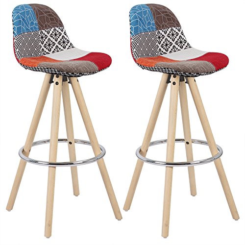 Woltu Lot de 2 Tabouret de Bar en Lin Cuisine avec Repose-Pi...