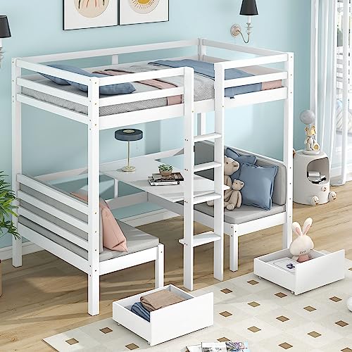Fonctionnel Deux Tiroirs, Cadre Lit Transformable avec Burea...