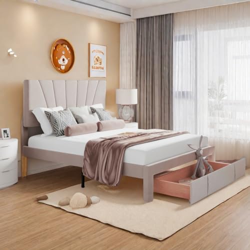 KOMHTOM Lit Double Rembourré Lit Coffre avec Rangement sous...