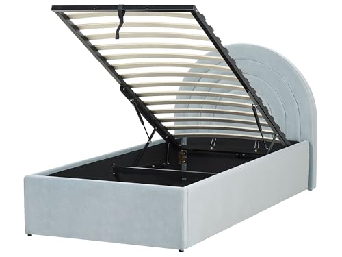 Lit Simple Bleu Clair en Velours 90 x 200 cm avec Coffre Têt...