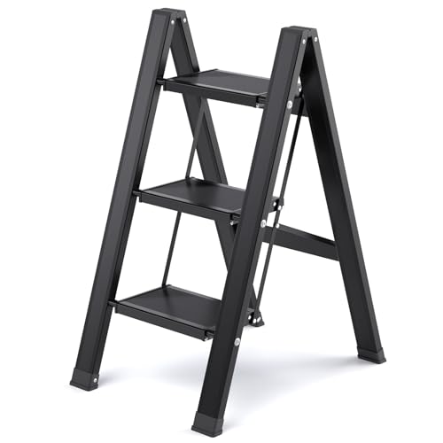 Sécurité et stabilité - L''escabeau pliable à 3 marches est...