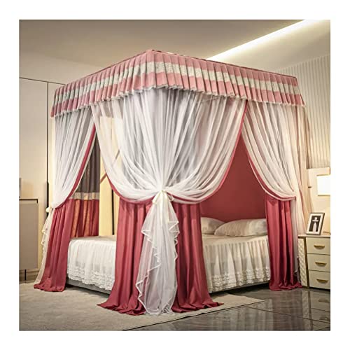 Rideaux de lit baldaquin roses, luxe cadre dentelle volants,...