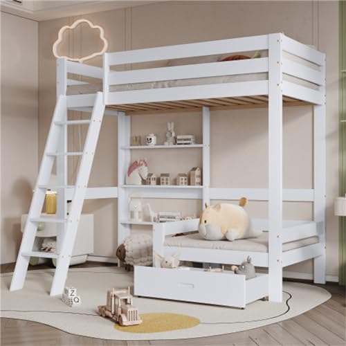 Lit Superposé Blanc avec Canapé Intégré Et étagères De Range...