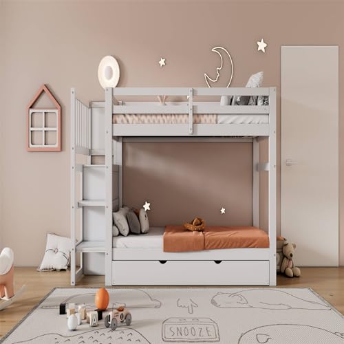 Superposé Triple Lit avec Étagères, 4 Tiroirs, Structure Rob...