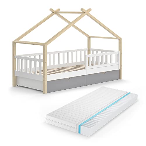 VitaliSpa lit cabane Design, Blanc/Gris/Gris, 70x140 cm avec...