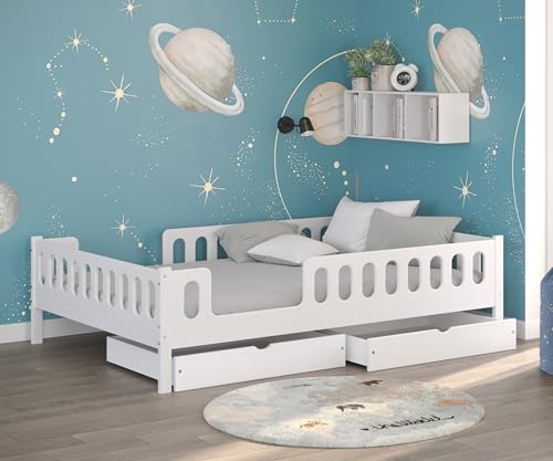 CADANI Lit Enfant Lars 140x200 cm Blanc, Barriere de securit...