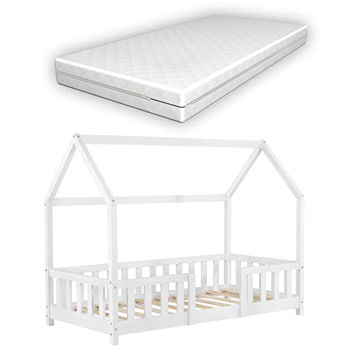 ML-Design Lit d''enfant Tipi 70 x 140 cm Blanc avec Matelas...