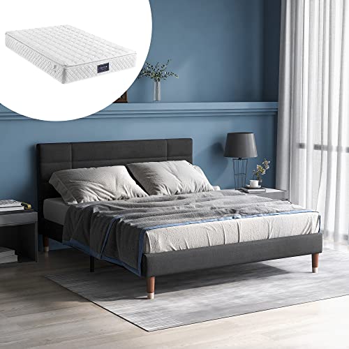 Vida Designs Victoria Cadre de lit capitonné en tissu, bois...