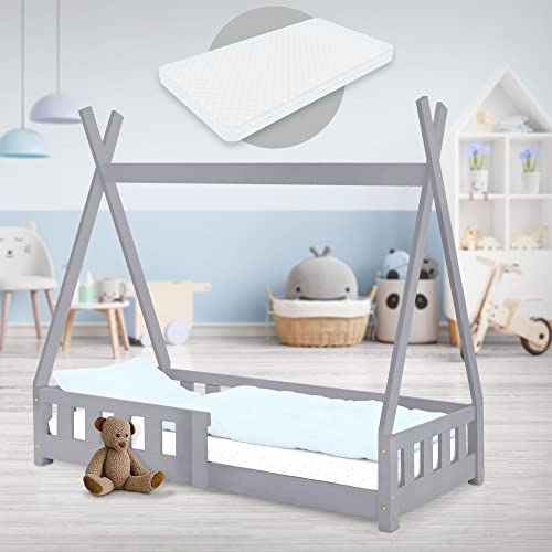 ML Design Lit Enfant Tipi 70x140 cm Gris Clair Matelas Anti-...