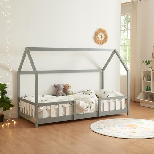 Lit Cabane Enfant Design Forme Gris Clair Bois de Pin 200 x...