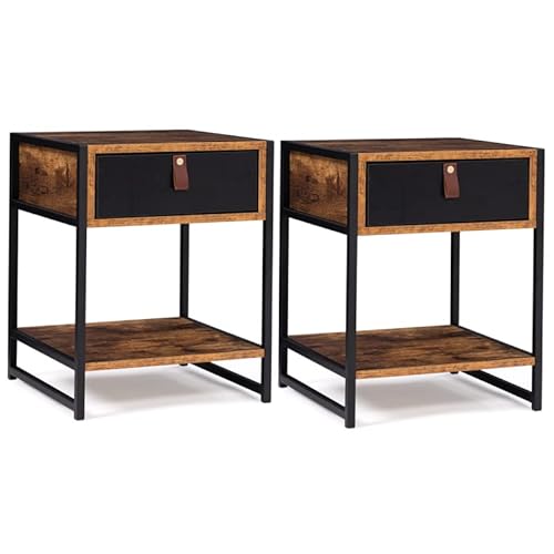 Lot de 2 chevets CHICAGO bois vieilli et métal noir pour une...