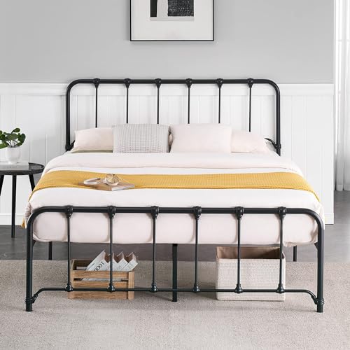 Coavain cadre de lit métal noir 150 x 200 cm cadre moderne à...