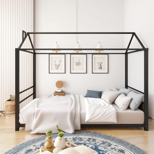 Le design en forme de toit du cadre de lit donne à ce lit un...