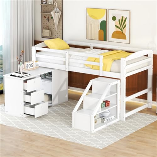LAHTI Lit mezzanine multifonction 90 x 200 cm en pin et MDF...