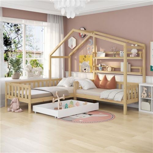 Lit cabane Lit Enfant en Forme de L Lit Coffre avec tiroirs...