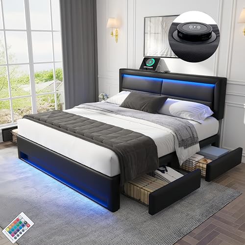 KOMHTOM Lit Rembourré avec Chargement sans Fil USB, Lit Coff...