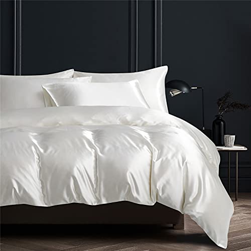 Gezu Housse de Couette 240x260cm Satin Blanc Unie Parure de...